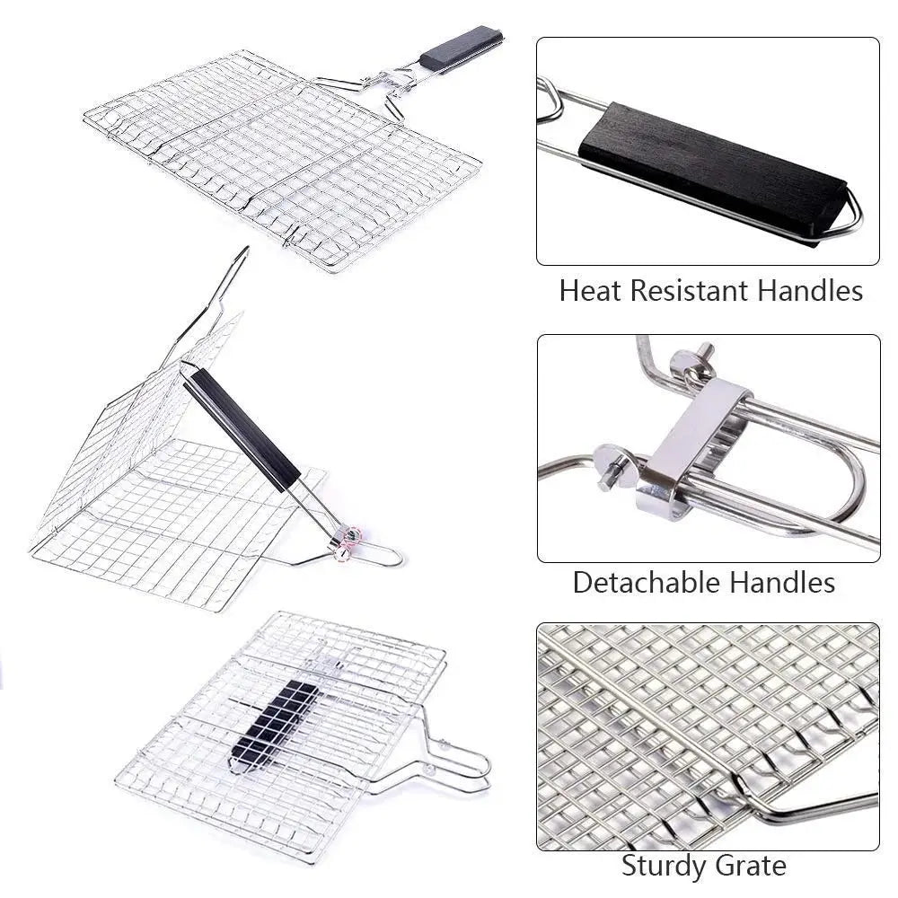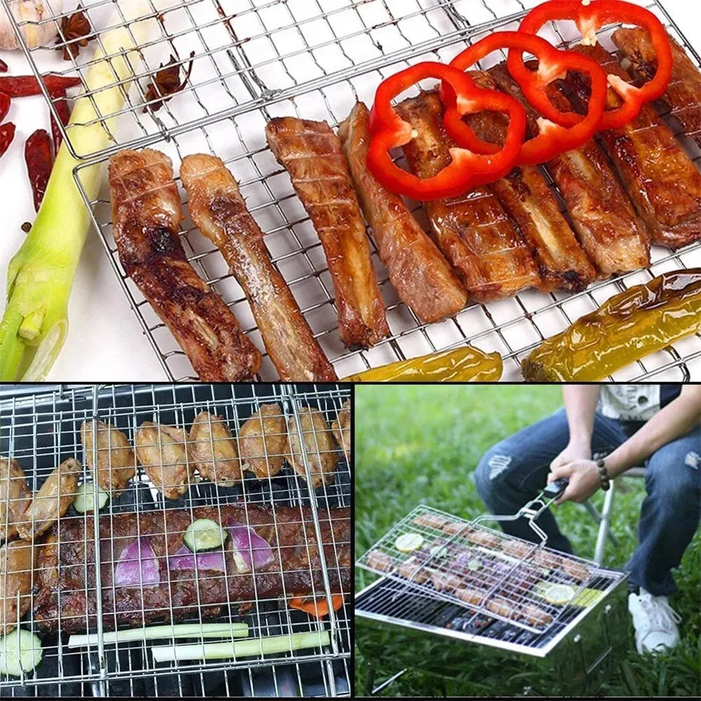 Grelha de Aço Inox Dobrável para Churrasco – Acessório Portátil para Grelhar Carnes e Vegetais