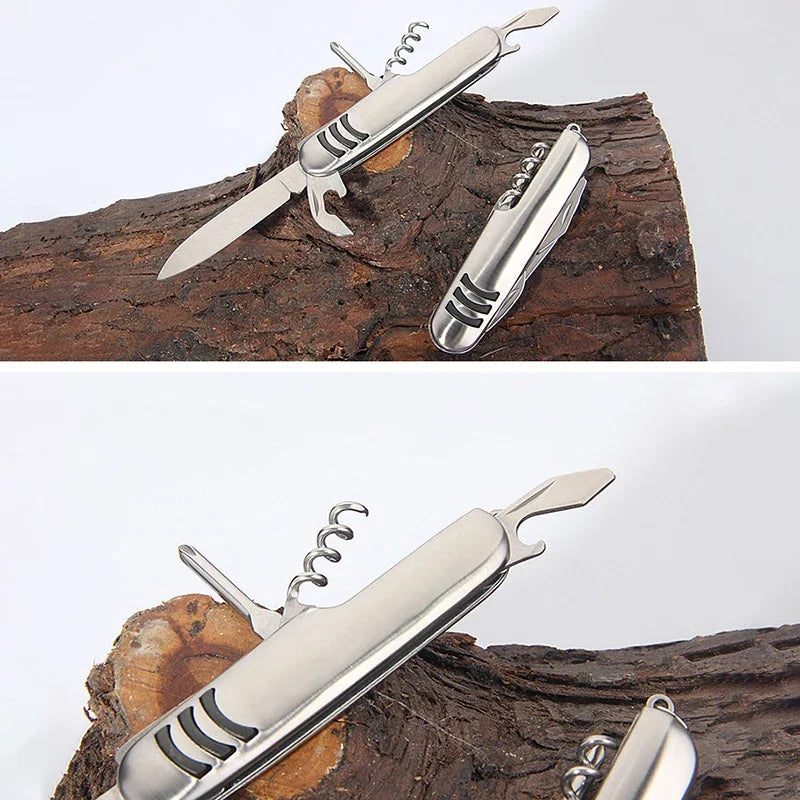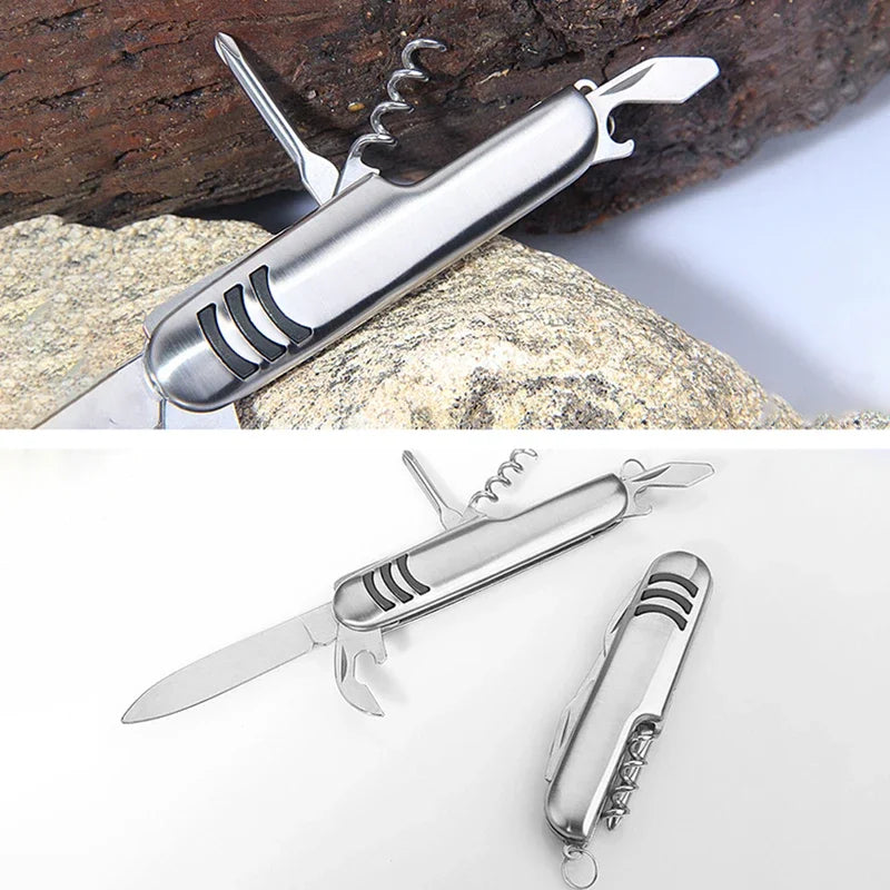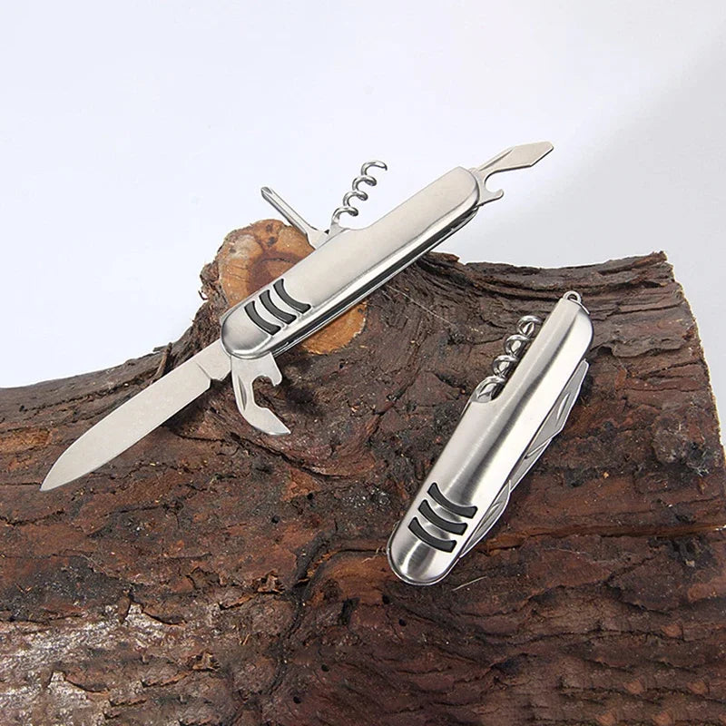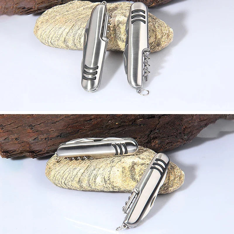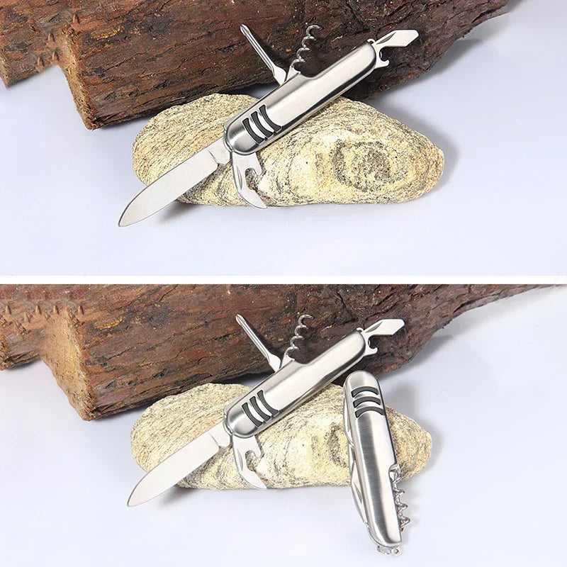 Canivete Dobrável Multifuncional em Aço Inox – Ferramenta para Camping, Churrasco e Uso Geral