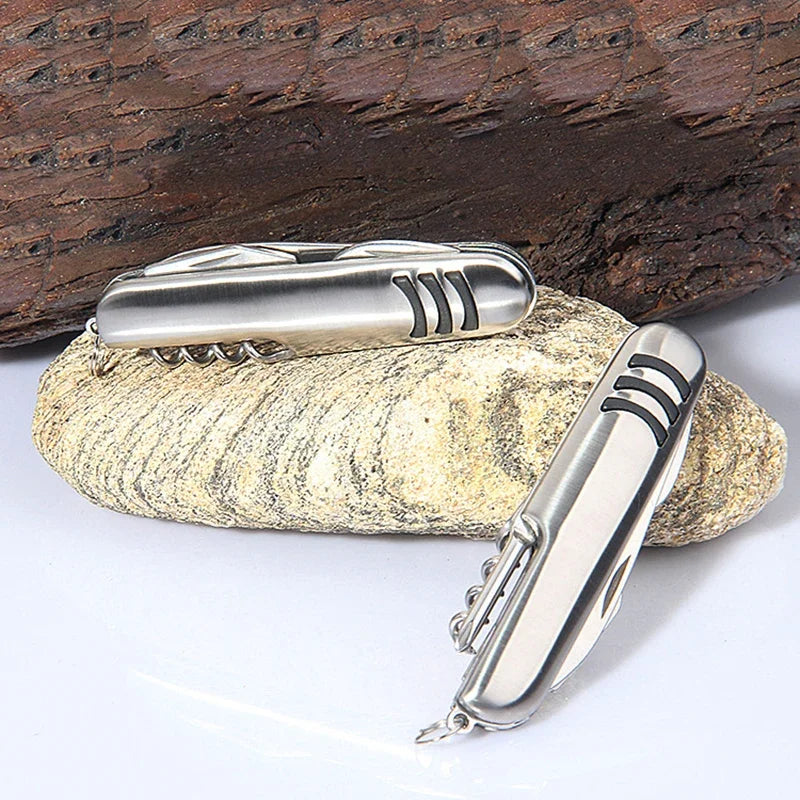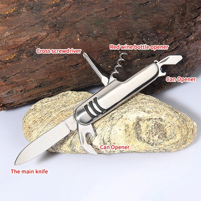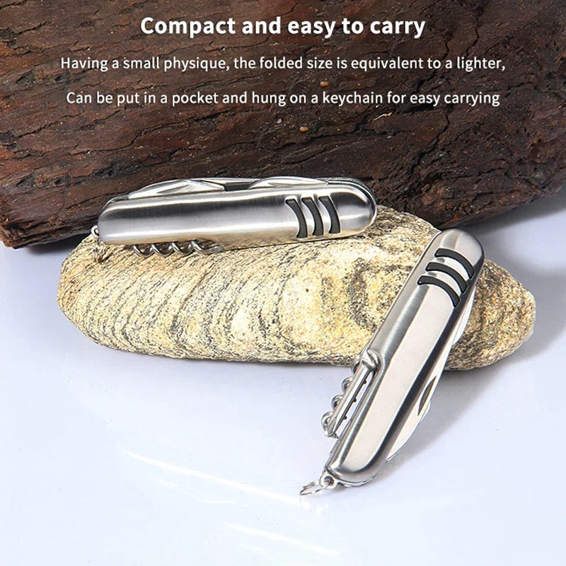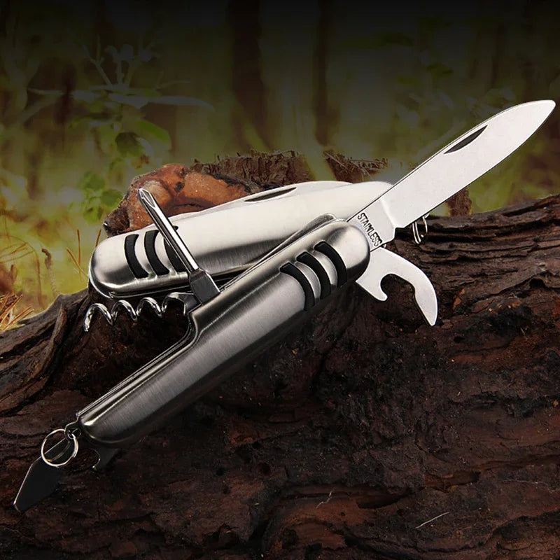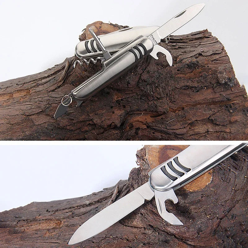 Canivete Dobrável Multifuncional em Aço Inox – Ferramenta para Camping, Churrasco e Uso Geral
